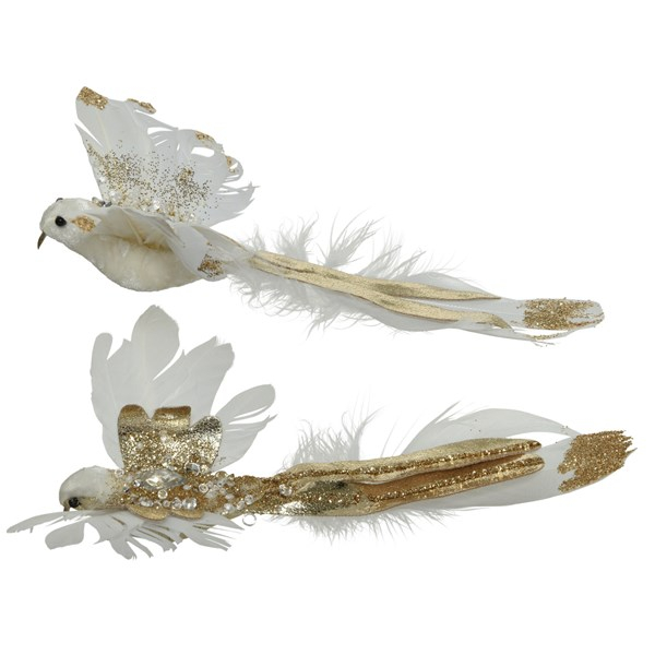 Ornament Birt ,white/gold , h13cm, 1pcs